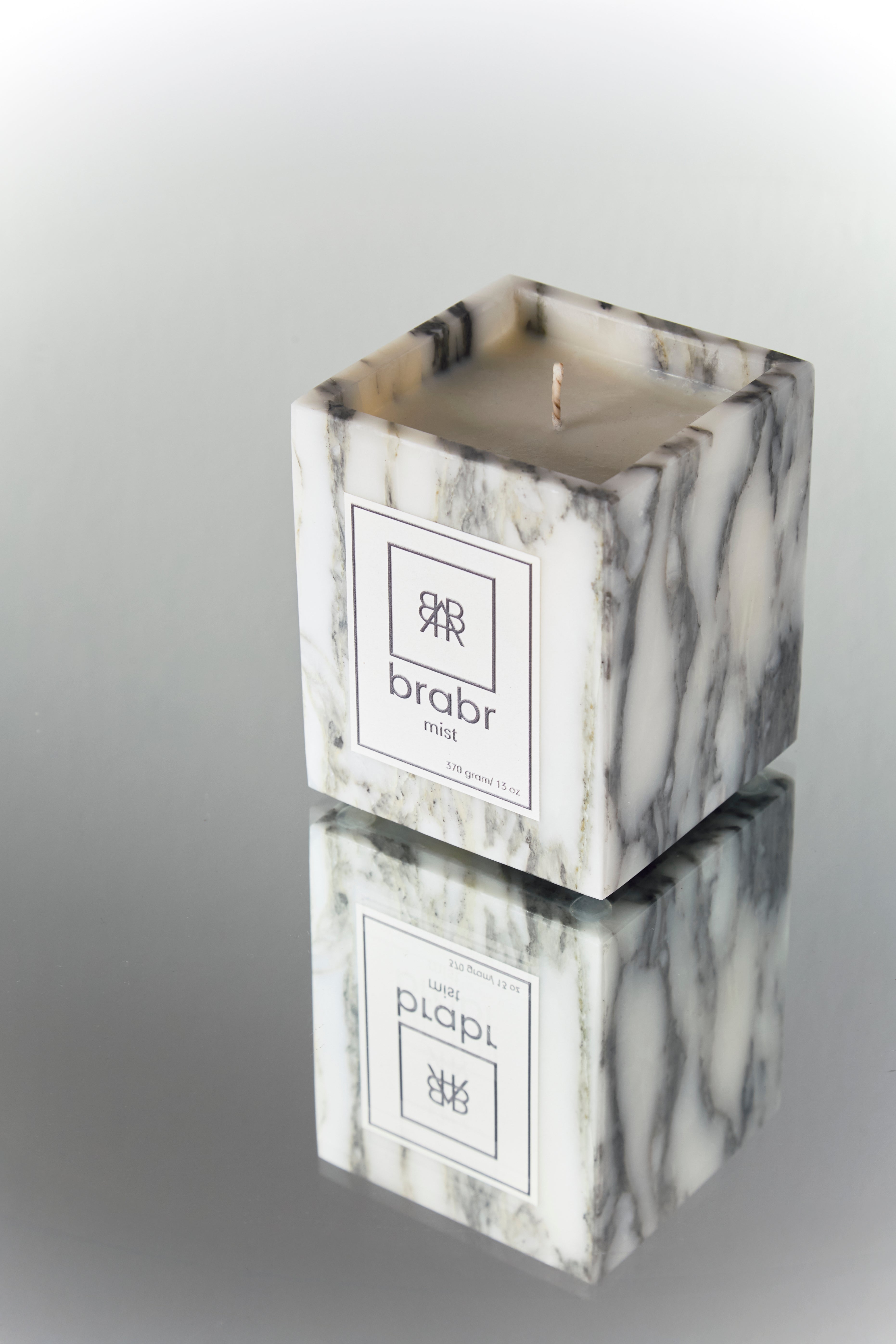 each brabr candle is hand-poured in soy wax with cotton wicks for a clean burn. each marble holder is unique and made to be kept long after the flame fades.